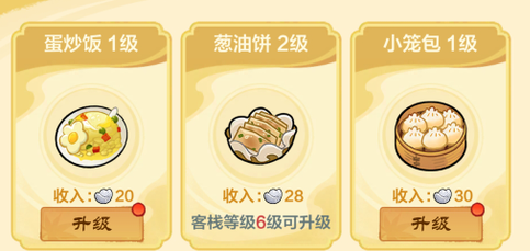 當客棧經驗達到升級要求,消耗銀兩即可升級客棧。升級客棧既可以解鎖新式菜肴、家具、客人,還可以提升每日招財的單次收益、上陣更多店員、提升客人造訪頻率等??蜅I墝⒊蔀榇髠b實現銀兩自由的關鍵噢~