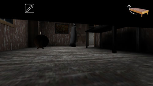 下樓梯后,你會(huì)在左邊的地板上看到一根黑線。踩到這根線時(shí),鈴鐺會(huì)響,所以要小心。你可以躲在樓梯旁邊的柜子里,柜子對(duì)面有一扇門(mén),里面可能會(huì)刷新一些東西。柜子旁邊還有一扇通往地下室的門(mén)(由于光線較暗,不太容易發(fā)現(xiàn))。奶奶的起點(diǎn)就在地下室,因此新手玩家不要一開(kāi)始就前往地下室。最后提醒一下,以后就不會(huì)再做這種提示了。墻上的畫(huà)、照片和小物件等都可能被碰掉,所以在走路時(shí)盡量不要靠近墻壁。
