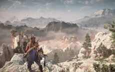 抵達營地后,入口將會被封閉,必須從山上走到右邊的入口。在營區的西北方,你可以看到營長,并攀巖而上。在擊殺頭目的地點,點擊R3 (數據點,用紫色標注),并與之交流。
